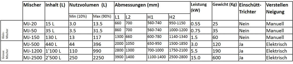 Eignung & Eigenschaften der Mischer MJ
