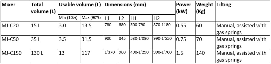The mixers MJ-C are intermediate mixers between the MJ and MP series.