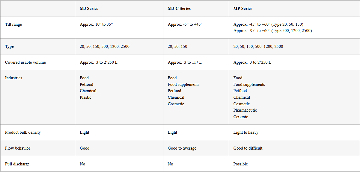 We mainly offer 2 series of mixers: the MJ series and the MP series.